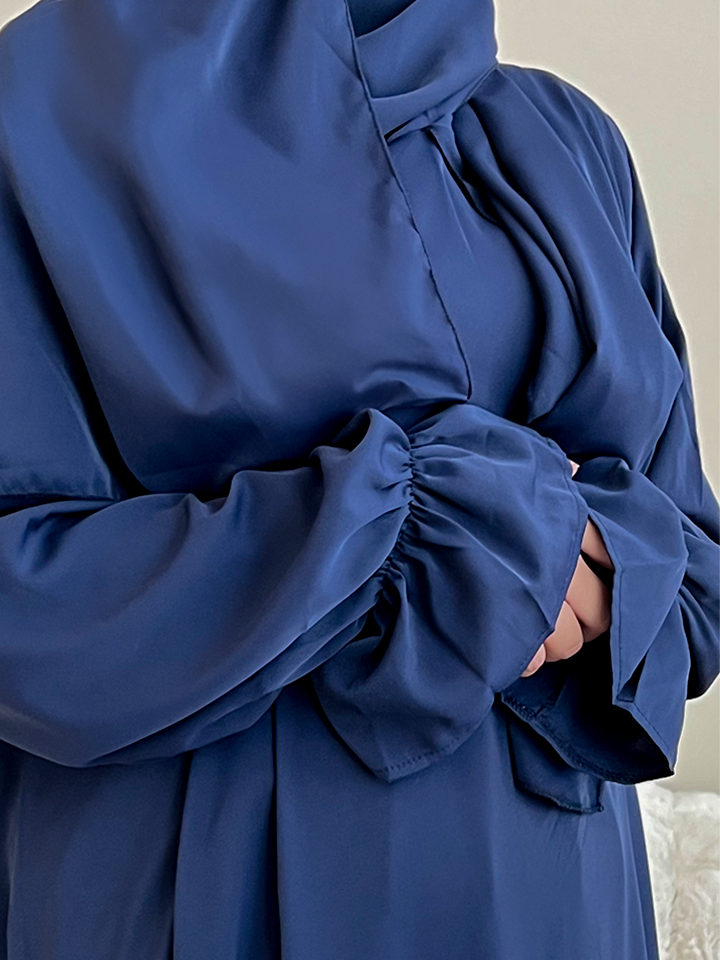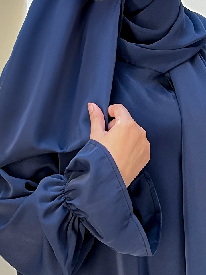 Our signature deep navy wrap. The smooth, cool-to-touch fabric provides a refined silhouette that grounds the spirit in contemplation.